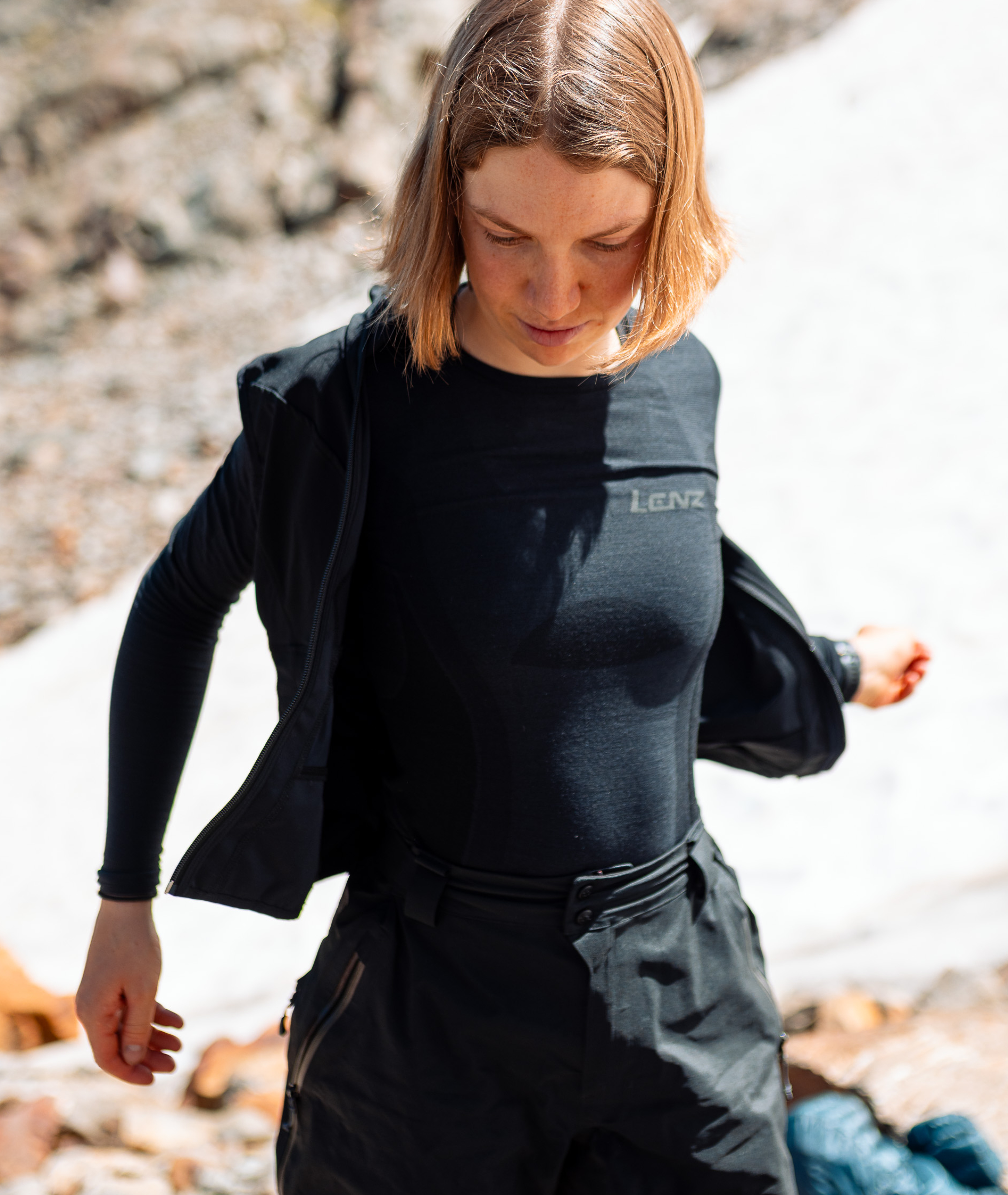 LENZ Γυναικείο Μακρυμάνικο ισοθερμικό Merino 6.0 με στρογγυλή λαιμόκοψη Μαύρο