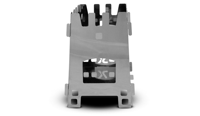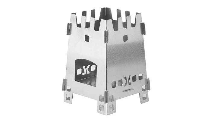 Εστία από ανοξείδωτο ατσάλι πέντε τεμαχίων. Μπορεί να τροφοδοτηθεί με κοινό στερεό καύσιμο ( ξύλο, βελόνες κ.λπ.).